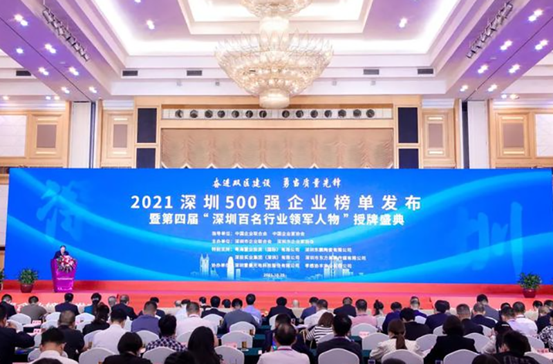 10月29日,“奮進(jìn)雙區(qū)建設(shè) 勇當(dāng)質(zhì)量先鋒”2021深圳500強(qiáng)企業(yè)榜單發(fā)布暨第四屆“深圳百名行業(yè)領(lǐng)軍人物”授牌盛典在深圳五洲賓館舉辦。