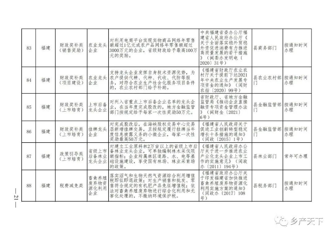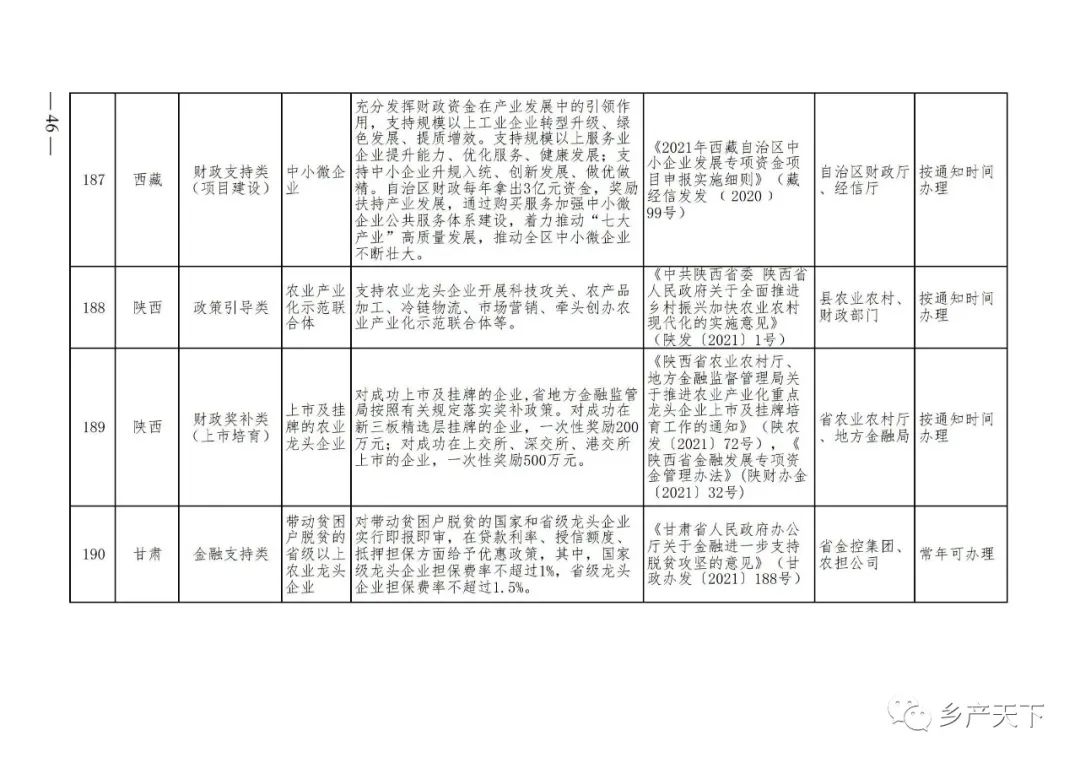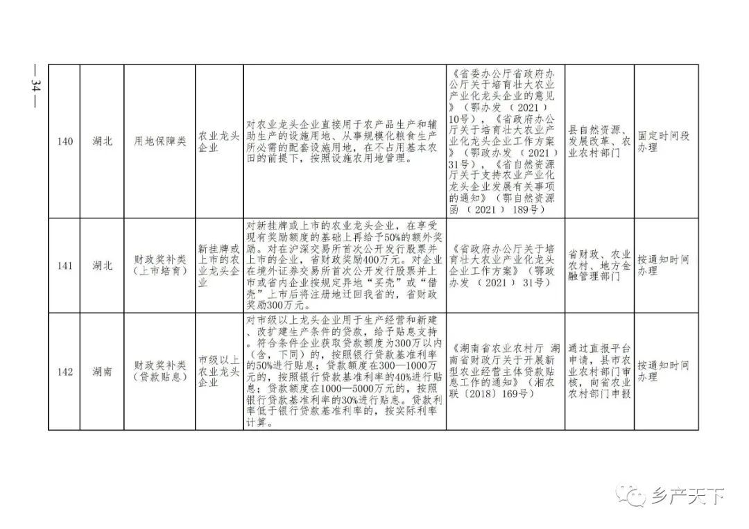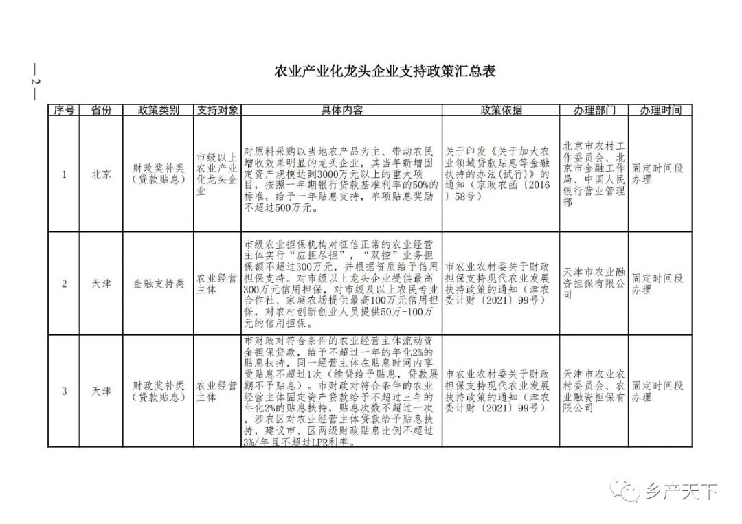 農業(yè)產(chǎn)業(yè)化龍頭企業(yè)支持政策清單
