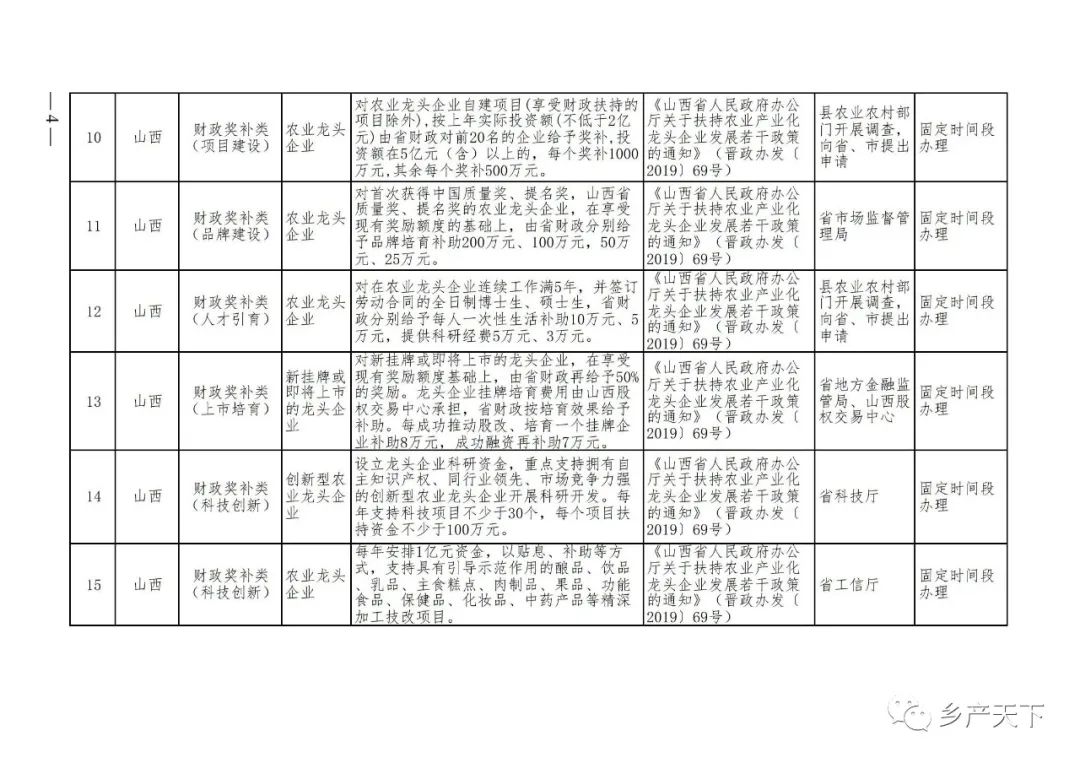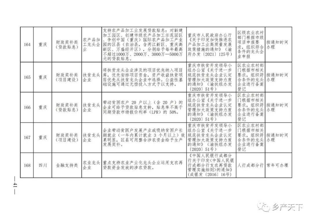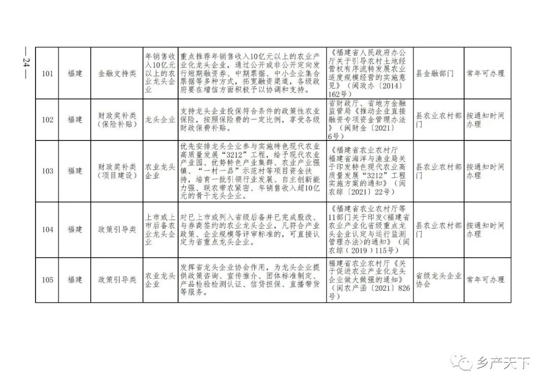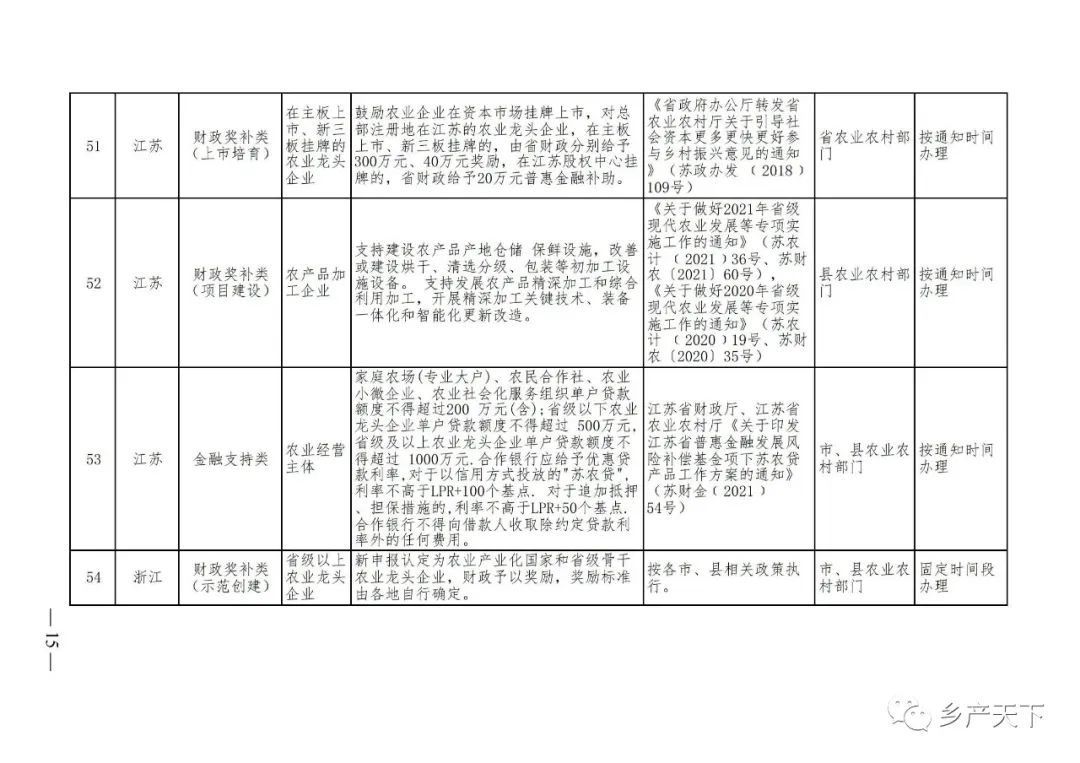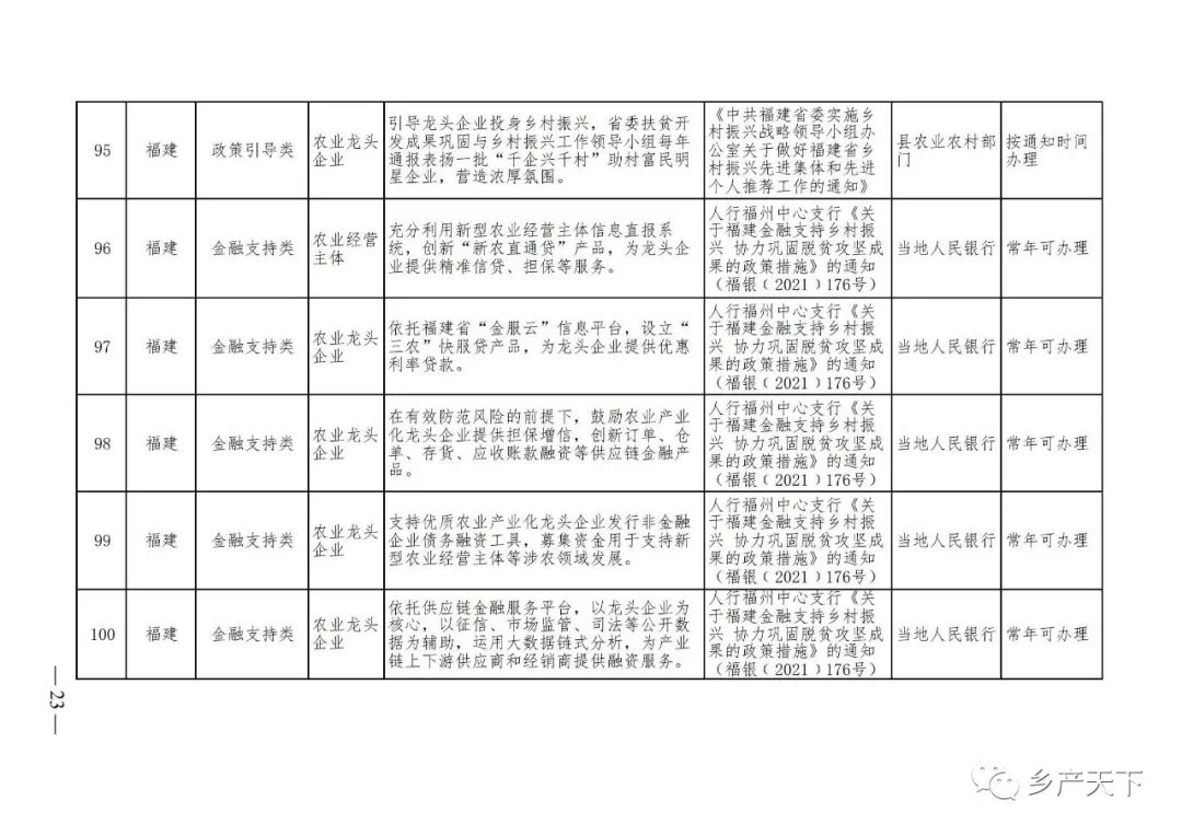 農業(yè)產(chǎn)業(yè)化龍頭企業(yè)支持政策清單